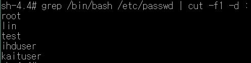 cut -f1 -d : --> 한 번 해보기를 바란다. 전체의 ID가 위 그림과 같이 표시가 될 것이다.
