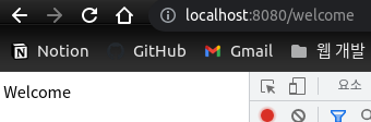 브라우저를 통해 "localhost:8080/welcome"을 입력하면 매핑된 JSP를 보여준다.